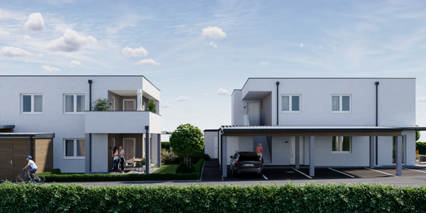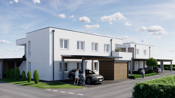 Darüber hinaus werden jeder Wohnung zwei KFZ-Stellplätze im Carport zugewiesen, um Komfort und Bequemlichkeit zu gewährleisten. Die südliche bzw. südwestliche Ausrichtung der Gebäude sorgt dafür, dass Sie von früh morgens bis zum Sonnenuntergang die Sonne auf Ihrer Terrasse genießen können.
